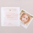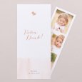Diese Danksagung hat es in sich: die Klappkarte im Hochformat beinhaltet einen Fotostreifen mit Platz für 3 Ihrer schönsten Fotos von der Taufe. Der Streifen kann als Andenken in der Karte aufbewahrt werden, aber auch herausgenommen und an den Kühlschrank gepinnt oder als Lesezeichen genutzt werden.