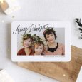 Die Weihnachtskarte Post-scriptum ist ein Klassiker, welcher auf elegante Weise neu interpretiert wurde. Die Karte ist zeitlos und bringt Ihr schönstes Foto des Jahres perfekt zur Geltung. Gestalten Sie sie selbst und schenken Sie Ihren Lieben für eine einzigartige Erinnerung an die Weihnachtszeit.