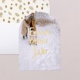 Lassen Sie sich mit der modern gestalteten Weihnachtskarte „Precious Year - Gold“ in festliche Stimmung versetzen. Die goldene Typografie verleiht der Karte einen eleganten und warmen Glanz – ideal, um die Feiertage stilvoll zu feiern.