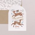 Diese elegante Weihnachtskarte mit bogenförmiger Oberkante kann auf der Vorder- und Rückseite personalisiert werden.